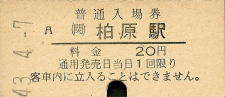 柏原 “かしわら” 20円 〔関西本線〕 昭和43年4月7日 |