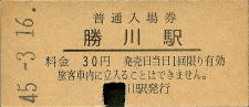 | 勝川 “かちがわ” 30円 〔中央本線〕 昭和45年3月16日 |