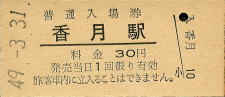 香月 “かつき” 30円 〔香月線〕 昭和49年3月31日 |