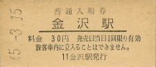 金沢 “かなざわ” 30円 〔北陸本線〕 昭和45年3月15日 |