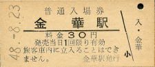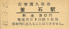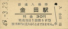 | 金田 “かなだ” 30円 〔伊田線〕 昭和49年3月23日 |