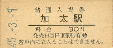 | 加太 “かぶと” 30円 〔関西本線〕 昭和45年3月9日 |