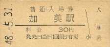 加美 “かみ” 30円 〔関西本線〕 昭和48年5月31日 |