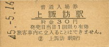 上諏訪 “かみすわ” 30円 〔中央本線〕 昭和45年5月16日 |