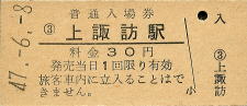 | 上諏訪 “かみすわ” 30円 〔中央本線〕 昭和47年6月8日 |