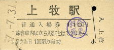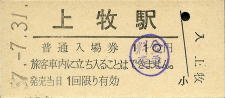 上牧 “かみもく” 110円 〔上越線〕 昭和57年7月31日 |