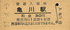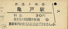 | 亀戸 “かめいど” 30円 〔総武本線〕 昭和50年4月1日 |
