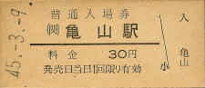 | 亀山 “かめやま” 30円 〔関西本線〕 昭和45年3月9日 |