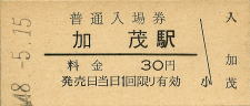 加茂 “かも” 30円 〔関西本線〕 昭和48年5月15日 |
