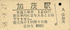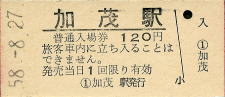 | 加茂 “かも” 120円 〔信越本線〕 昭和58年8月27日 |