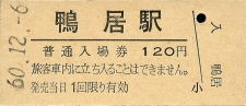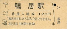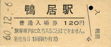 | 鴨居 “かもい” 120円 〔横浜線〕 昭和60年12月6日 |
