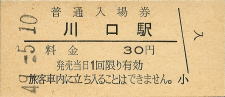 川口 “かわぐち” 30円 〔東北本線〕 昭和49年5月10日 |