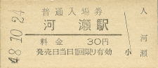 | 河瀬 “かわせ” 30円 〔東海道本線〕 昭和48年10月24日 |