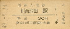 川西池田 “かわにしいけだ” 30円 〔福知山線〕 昭和49年8月14日 |