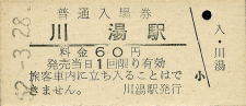| 川湯 “かわゆ” 60円 〔釧網本線〕 昭和52年3月28日 |