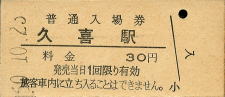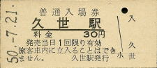 久世 “くせ” 30円 〔姫新線〕 昭和50年7月21日 |
