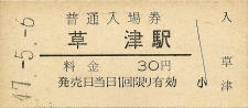 草津 “くさつ” 30円 〔東海道本線〕 昭和47年5月6日 |