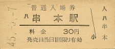 | 串本 “くしもと” 30円 〔紀勢本線〕 昭和45年3月7日 |
