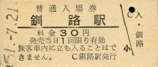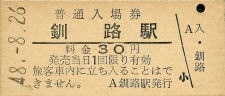 釧路 “くしろ” 30円 〔根室本線〕 昭和48年8月26日 |