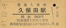 | 久保田 “くぼた” 30円 〔長崎本線〕 昭和47年10月9日 |