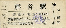 熊谷 “くまがや” 80円 〔高崎線〕 昭和54年8月11日 |