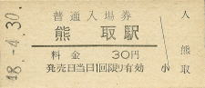 熊取 “くまとり” 30円 〔阪和線〕 昭和48年4月30日 |