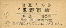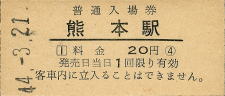 | 熊本 “くまもと” 20円 〔鹿児島本線〕 昭和44年3月21日 |