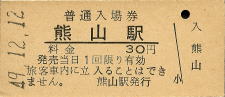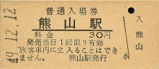 熊山 “くまやま” 30円 〔山陽本線〕 昭和49年12月12日 |