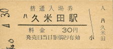 | 久米田 “くめだ” 30円 〔阪和線〕 昭和48年4月30日 |
