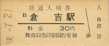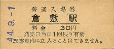 | 倉敷 “くらしき” 30円 〔山陽本線〕 昭和44年9月1日 |