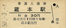蔵本 “くらもと” 30円 〔徳島本線〕 昭和50年3月4日 |