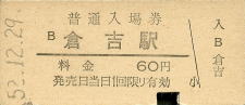 | 倉吉 “くらよし” 60円 〔山陰本線〕 昭和52年12月29日 |