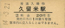 | 久留米 “くるめ” 20円 〔鹿児島本線〕 昭和44年3月21日 |