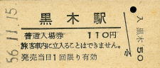 黒木 “くろき” 110円 〔矢部線〕 昭和56年11月15日 |
