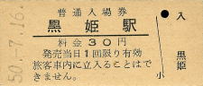 | 黒姫 “くろひめ” 30円 〔信越本線〕 昭和50年7月16日 |