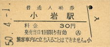 小岩 “こいわ” 30円 〔総武本線〕 昭和50年4月1日 |