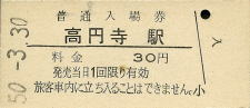 | 高円寺 “こうえんじ” 30円 〔中央本線〕 昭和50年3月30日 |