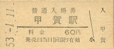 甲賀 “こうか” 60円 〔草津線〕 昭和53年1月11日 |