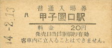 甲子園口 “こうしえんぐち” 20円 〔東海道本線〕 昭和44年2月13日 |