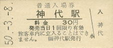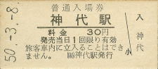 神代 “こうじろ” 30円 〔山陽本線〕 昭和50年3月8日 |