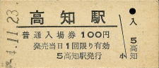 | 高知 “こうち” 100円 〔土讃本線〕 昭和54年11月23日 |