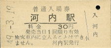 河内 “こうち” 30円 〔山陽本線〕 昭和49年3月19日 |