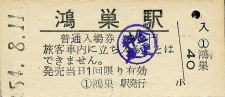 鴻巣 “こうのす” 80円 〔高崎線〕 昭和54年8月11日 |