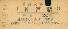 神戸 “こうべ” 20円 〔東海道本線〕 昭和43年8月24日 |
