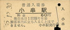 | 小串 “こぐし” 30円 〔山陰本線〕 昭和48年12月30日 |