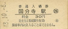 国分寺 “こくぶんじ” 30円 〔中央本線〕 昭和48年10月8日 |