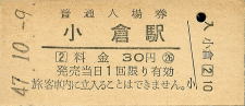 | 小倉 “こくら” 30円 〔鹿児島本線〕 昭和47年10月9日 |