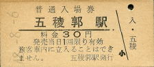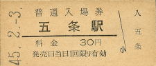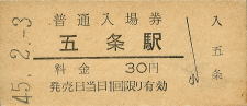 | 五条 “ごじょう” 30円 〔和歌山線〕 昭和45年2月3日 |