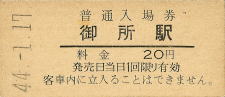 御所 “ごせ” 20円 〔和歌山線〕 昭和44年1月17日 |