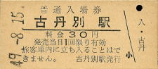 | 古丹別 “こたんべつ” 30円 〔羽幌線〕 昭和49年8月15日 |